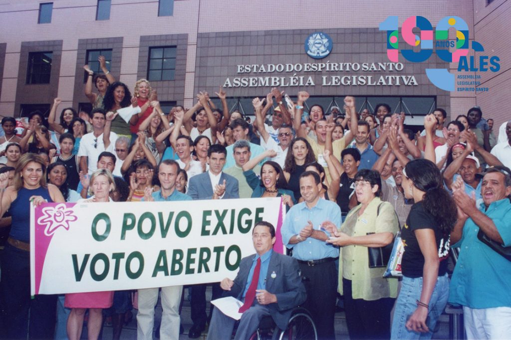 Foto de Capa: Arquivo Sindibancários ES A partir de 2003, e no decorrer dos anos seguintes, um conjunto de ações aprovadas pelos deputados estaduais resultou em uma nova dinâmica de funcionamento na Assembleia Legislativa (Ales), ajudando a resgatar a imagem do Poder, abalada pela crise institucional de 1990. As primeiras iniciativas se deram já no início de 2003 e versaram sobre o veto secreto e o fim da reeleição para a Mesa Diretora. Na primeira sessão ordinária da 15ª Legislatura, a 18 de fevereiro de 2003, foram apresentadas duas propostas de emendas constitucionais. A PEC 1/2003, subscrita por 14 deputados dos 22 em exercício de mandato naquelas primeiras sessões, adequou as regras de votação secreta no Legislativo capixaba ao texto da Constituição Federal. Já a PEC 2/2003, de autoria da Mesa Diretora, alterou as regras para eleição da direção da Ales. Assim, a eleição da Mesa Diretora, composta por sete deputados, voltou a ser realizada a 1º de fevereiro (dia da posse dos deputados), estabelecendo-se mandato de dois anos para os cargos de direção, sem direito à reeleição. A PEC 2/2003 obteve 19 votos dos 26 parlamentares em exercício na sessão ordinária de 19 de abril de 2003, dando origem à Emenda 40/2003. De lá pra cá, ocorreram mudanças na eleição para a Mesa Diretora. A mais recente, promovida pela Resolução 10.313/2024, aumentou de 7 para 10 o número de integrantes da Mesa. Confira outras mudanças na eleição da Mesa Diretora. Fim do voto secreto O voto secreto na Ales foi alvo da PEC 1/2003, aprovada em 23 de abril por 25 deputados dos 30 presentes, originando a Emenda Constitucional 41/2003. A votação secreta permaneceu somente para os casos de vetos do Executivo, cassação de mandato parlamentar, escolha de conselheiro do Tribunal de Contas e exoneração de procurador-geral de Justiça. Entretanto, por proposta dos deputados Claudio Vereza e Carlos Casteglione, ambos do PT, o parlamento capixaba acataria, anos depois, a PEC 3/2007, que extinguiu todo tipo de votação secreta em sessão da Ales, resultando na Emenda Constitucional 53/2007, promulgada em julho. Naquele mesmo mês foi instalado o primeiro painel eletrônico no Plenário Dirceu Cardoso. Vale lembrar que a Ales foi pioneira na abolição total do voto secreto, pondo fim a uma prática de décadas no parlamento capixaba (veja boxe abaixo). No Congresso Nacional, isso só aconteceria seis anos depois, em 2013, quando foi aprovada a PEC 349/2001 (EC 76/2013), depois de 12 anos de tramitação. Auxílio-paletó Outra ação moralizatória na Ales, em 2003, foi o fim do auxílio-paletó, que era um valor extra para os parlamentares estaduais. Travestido de “ajuda de custos” e pago como gratificação ou indenização, o auxílio estava previsto no artigo 3º do Projeto de Lei 2/2002, que definiu os novos subsídios para governador, vice, secretários e deputados e foi aprovado pelos deputados da legislatura anterior (14ª), em janeiro de 2003. O veto parcial do governador Paulo Hartung a esse artigo foi mantido pelos deputados estaduais em sessão realizada a 26 de fevereiro de 2003. Dos 23 parlamentares em exercício de mandato, um estava em licença médica e outros dois não compareceram. Os 20 presentes votaram pelo fim do auxílio-paletó da Ales. Vale lembrar que o pagamento desse auxílio já era vedado pela Constituição Federal (artigo 39, parágrafo 4º; e artigo 57, inciso VII). Concursos públicos Um dos temas cruciais para a moralização do Legislativo, pós-crise institucional dos anos 90, foi a realização de concurso público para seleção de servidores. Havia uma pressão para a redução do número de ocupantes de cargos em comissão para a formação de um quadro efetivo. O último concurso público para admissão de servidores públicos havia sido realizado em 1994. Então, em abril de 2006, a Assembleia Legislativa contratou o Núcleo de Computação Eletrônica da Fundação José Bonifácio, da Universidade Federal do Rio de Janeiro (UFRJ) para realizar o certame. À época, o objetivo era extinguir 87 cargos comissionados e contratar efetivos para as áreas de comunicação, taquigrafia, informática e áreas administrativas e financeiras da Ales. As vagas para o quadro efetivo foram divididas em três editais. O primeiro foi publicado no dia 16 de junho de 2006, com a oferta de 20 vagas, para analista legislativo de nível superior nas áreas de engenharia elétrica, engenharia civil, contabilidade, administração e taquigrafia, além de programador de sistema júnior (nível médio). As provas foram realizadas a 20 de agosto, a homologação dos resultados ocorreu em 18 de outubro de 2006 e a nomeação de 18 aprovados ocorreu em 7 de julho de 2009. Edital da Comunicação O segundo edital de concurso foi aberto em fevereiro de 2007, com 28 vagas para técnicos em comunicação, visando à extinção de 18 cargos comissionados. As vagas para eram para os cargos de editor de texto; produtor-jornalismo e vídeo; supervisor técnico de TV; supervisor de programação; operador de computação gráfica; editor geral de notícias, repórter, diretor de criação; repórter apresentador; repórter cinematográfico/operador de câmera portátil; assistente técnico de supervisão; editor de imagens; operador de controle mestre; repórter fotográfico; editor de áudio; locutor/apresentador. No dia 20 de março de 2007, porém, a Mesa Diretora da Ales anunciou o adiamento desse concurso, porque o TCE-ES havia considerado inconstitucional o artigo 8º da Lei 8.125/2005, que criou os cargos efetivos de comunicação. Segundo o TCE, a lei trazia apenas as qualificações exigidas e faltava determinar as atribuições de cada cargo, motivo pelo qual o processo seletivo foi suspenso. Sanado esse problema, as provas para a área de comunicação foram aplicadas em 31 de agosto de 2008, mas o concurso foi anulado no dia seguinte, por meio do Ato da