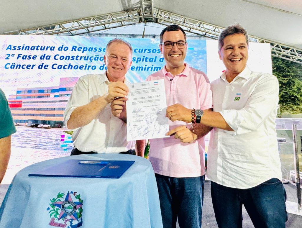 Nessa quinta-feira (9), o deputado estadual Dr. Bruno Resende, que preside a Comissão de Saúde da Assembleia Legislativa, esteve presente na assinatura do convênio que destinará R$ 30 milhões para as obras do Hospital do Câncer, em Cachoeiro de Itapemirim. Ao lado do governador Renato Casagrande e do vice-governador Ricardo Ferraço, ele se emocionou. “Estou muito feliz com essa nova etapa do Hospital do Câncer. Essa obra é a realização do sonho da minha vida. O hospital contará com 120 leitos de enfermaria, 20 leitos de UTI e, o mais importante: será 100% SUS”, declarou Dr. Bruno Resende, que é médico radio-oncologista especializado no tratamento do câncer. Desde o início da obra, Dr. Bruno vem acompanhando os trâmites técnicos e as necessidades do projeto. Ele participou da ordem de serviço em março de 2023, e fez diversas visitas técnicas, atuando também para viabilizar os recursos necessários. O investimento público é fruto de uma parceria entre o Hospital Evangélico de Cachoeiro (HECI), onde Dr. Bruno atua, e o governo do Estado do Espírito Santo, com complementos fornecidos por emendas da bancada federal e recursos do orçamento estadual. Na Assembleia Legislativa, Dr. Bruno tem se empenhado para assegurar que os recursos sejam mantidos durante toda a execução da obra. O investimento total previsto é de R$ 263,3 milhões, sendo R$ 100 milhões em recursos estaduais e R$ 163,3 milhões como contrapartida do Hospital Evangélico de Cachoeiro de Itapemirim. O repasse da Sesa será feito em três parcelas: R$ 30 milhões em outubro de 2025, R$ 35 milhões em fevereiro de 2026 e R$ 35 milhões em janeiro de 2027. A previsão é de que a obra seja concluída até setembro de 2027. “Fiquei muito feliz quando tive a oportunidade de reabrir o Hospital da Aquidaban na época da pandemia. Aquele hospital se tornou importantíssimo para a região. Fiquei angustiado com a crise da Santa Casa, mas feliz quando conseguimos estabilizar. São conquistas que nos deixam contentes. Se olhar para pouco tempo atrás, nada disso existia. Hoje estamos fazendo esse investimento no Hospital do Câncer. Essa doença não aflige somente os pacientes, mas também todo o entorno, como as famílias e amigos”, comentou o governador. Com a finalização da segunda etapa, o Hospital do Câncer de Cachoeiro de Itapemirim ampliará a capacidade de atendimento em toda a macrorregião Sul, beneficiando cerca de 700 mil habitantes. Além dos leitos, a unidade também contará com novos equipamentos de diagnóstico por imagem, como ultrassom, tomografia e ressonância magnética, além de estacionamento com 400 vagas.
